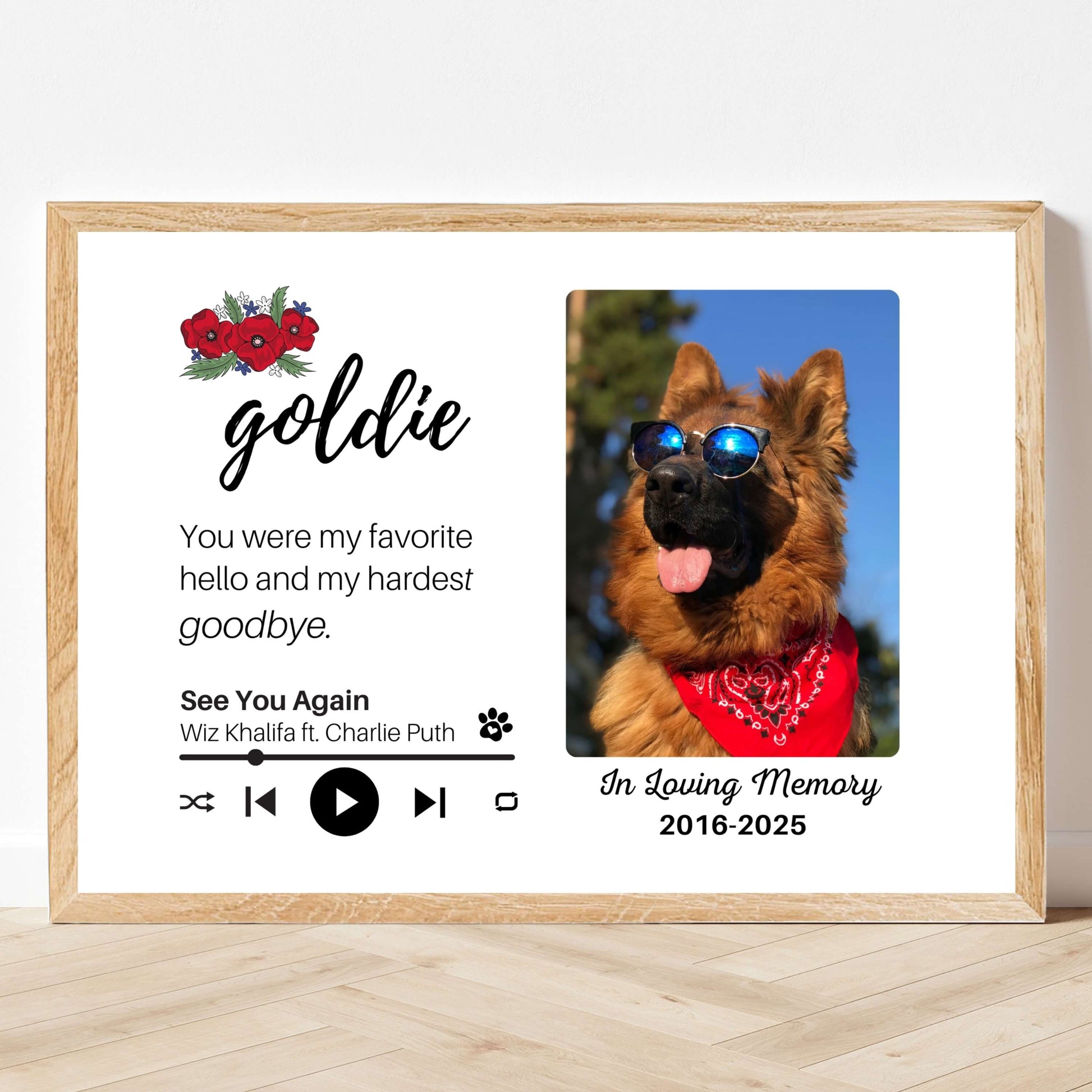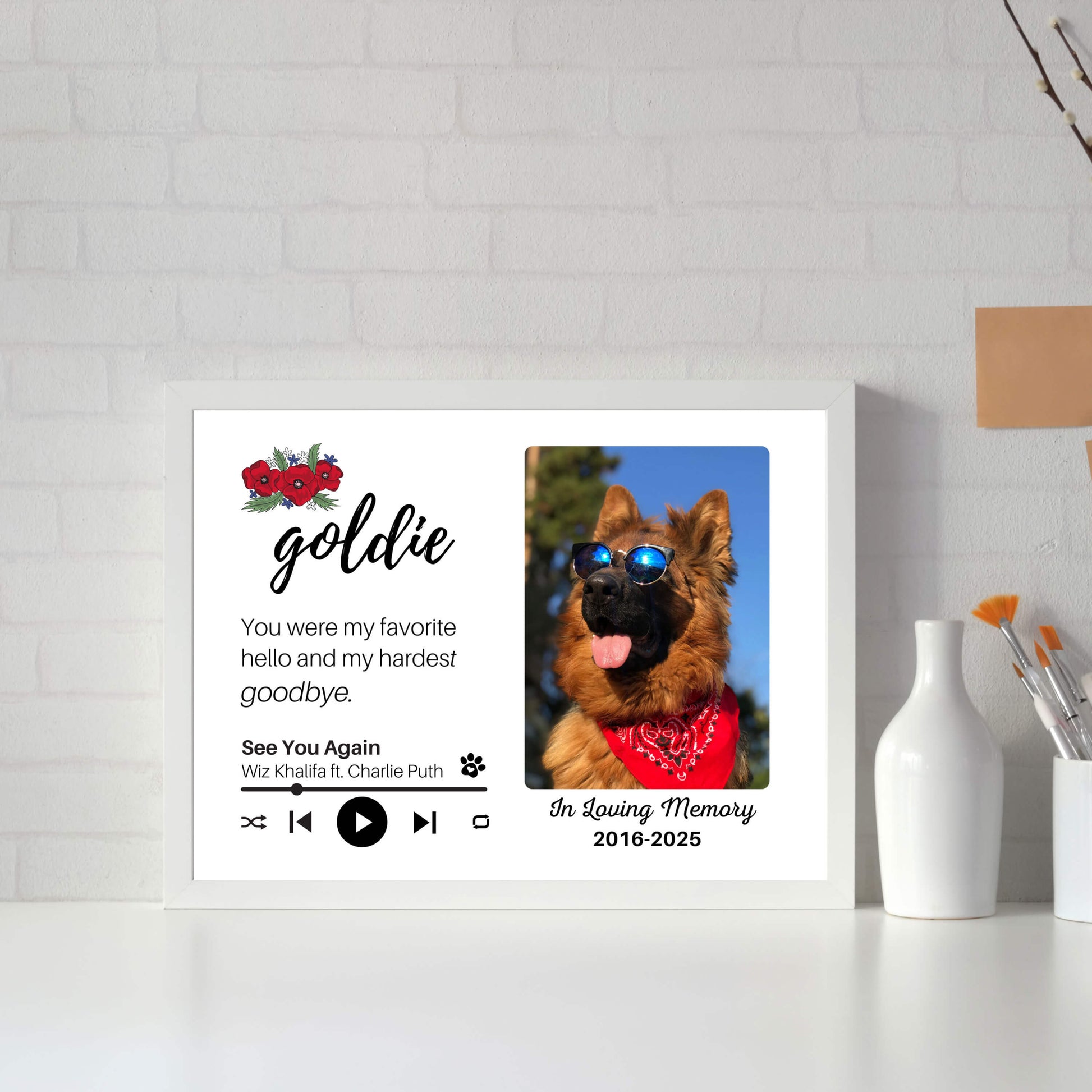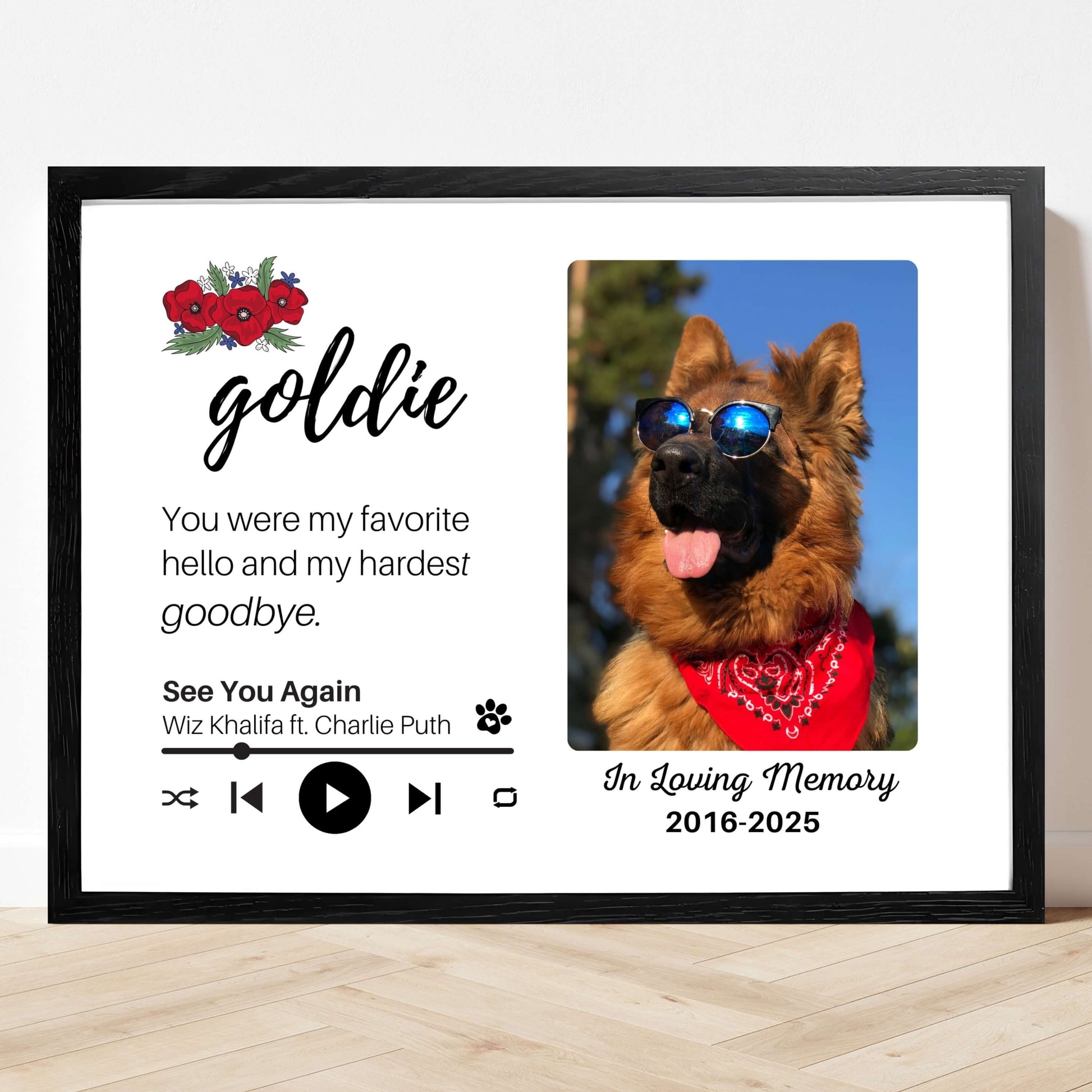 Personalized Dog Memorial Frame – "Favorite Hello, Hardest Goodbye" – Poppy Floral – Horizontal