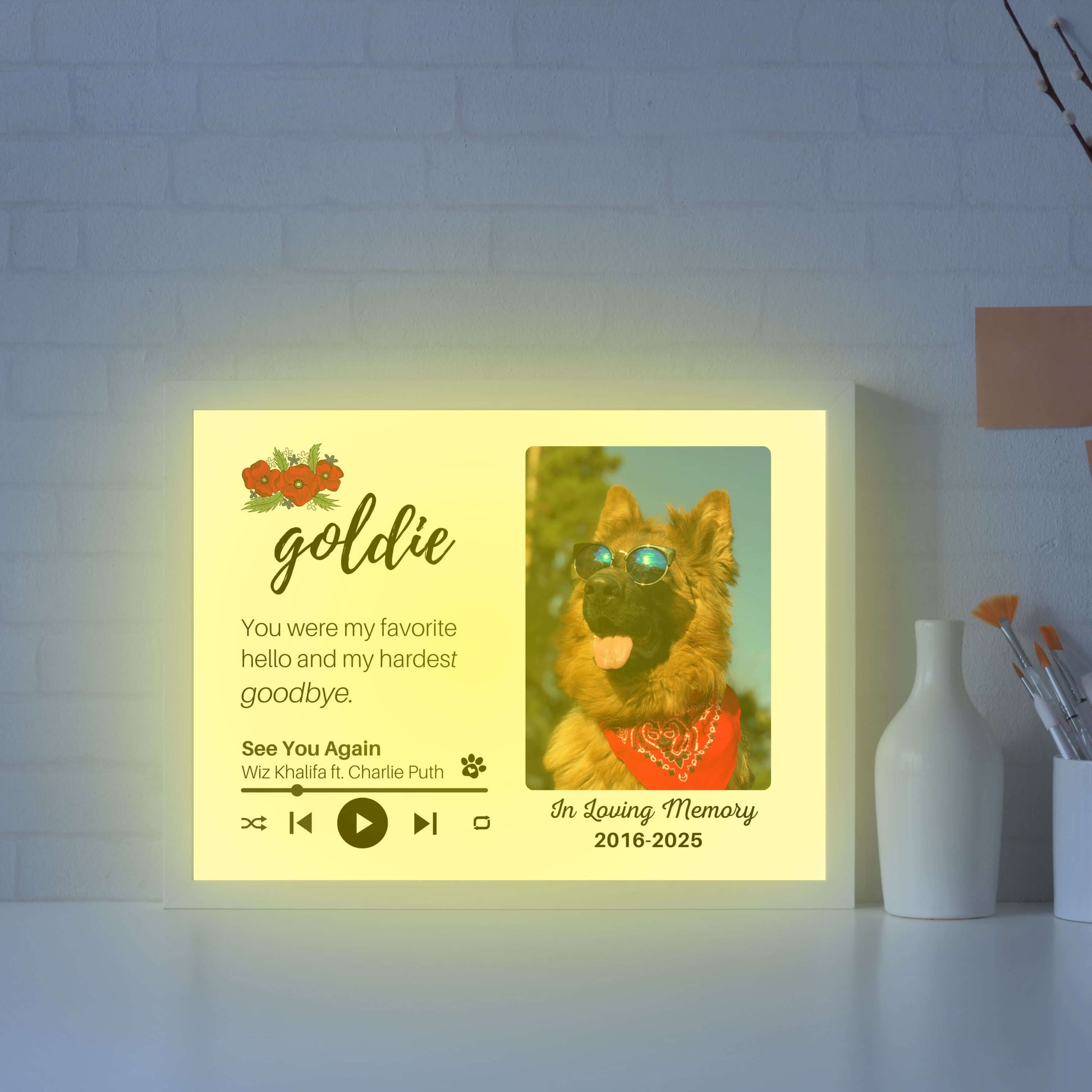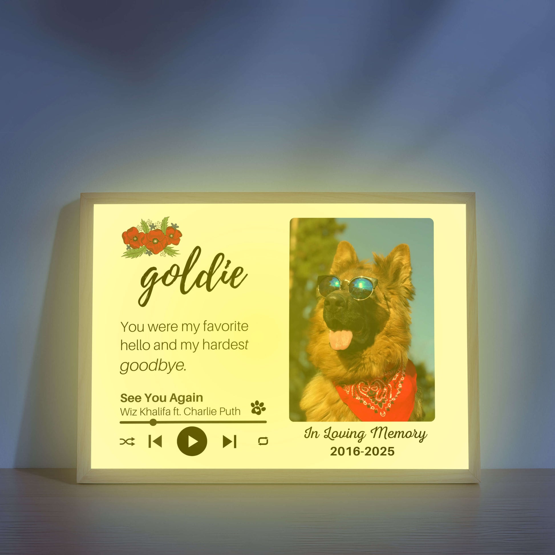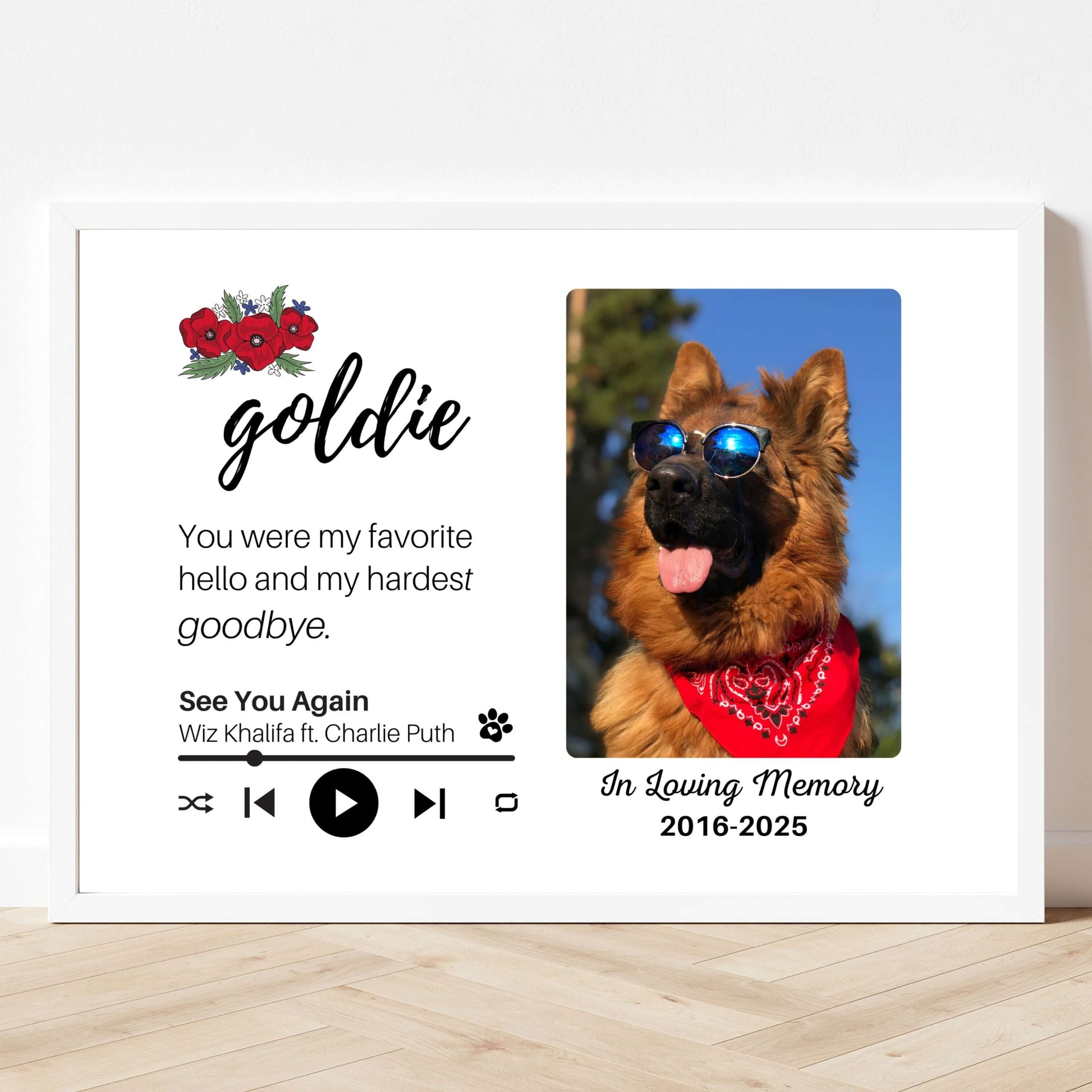 Personalized Dog Memorial Frame – "Favorite Hello, Hardest Goodbye" – Poppy Floral – Horizontal