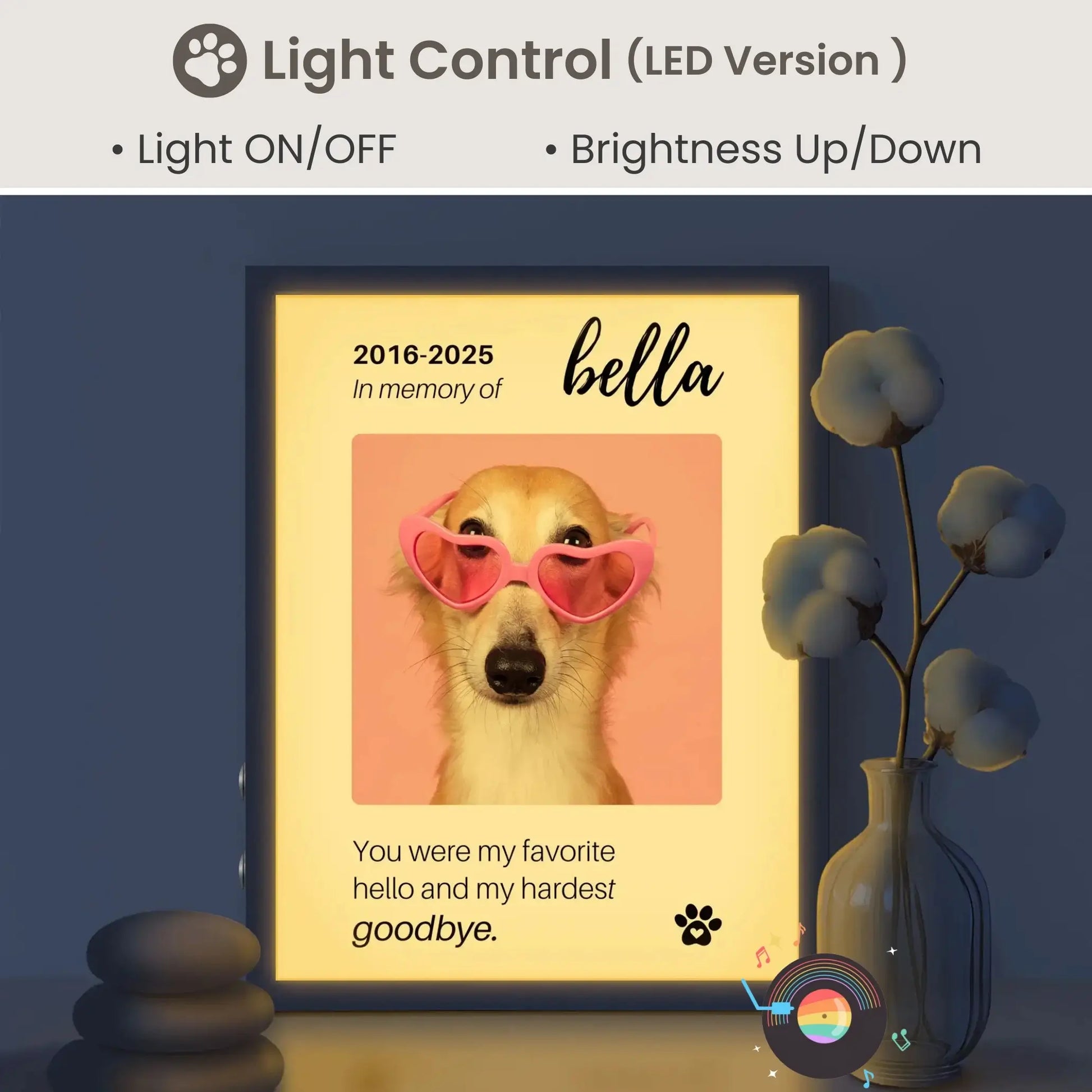 Personalized Dog Memorial Frame – "Favorite Hello, Hardest Goodbye" – Vertical