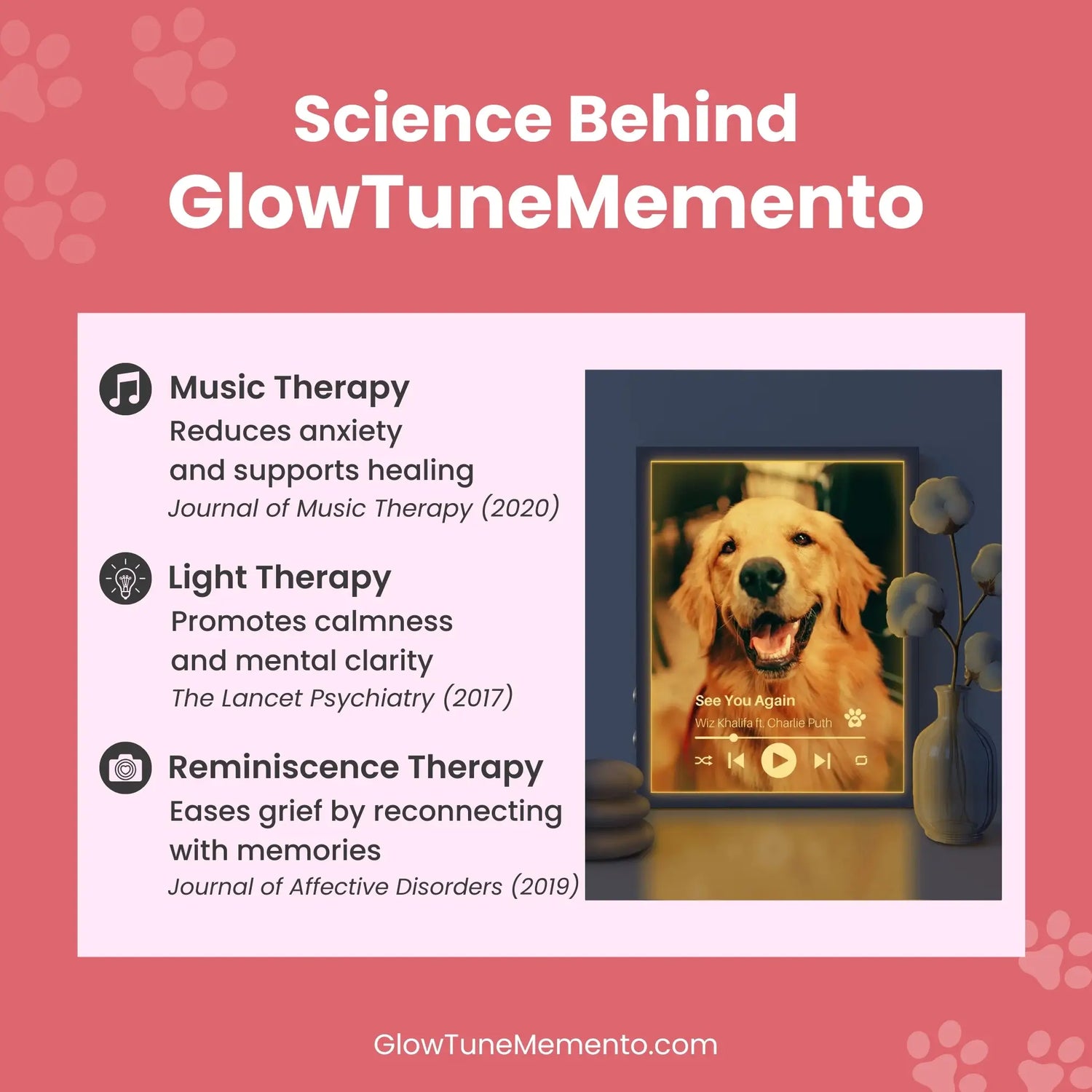 GlowTuneMemento was designed with inspiration from evidence-based healing practices — including Music Therapy, Light Therapy, and Reminiscence Therapy — all of which have been supported by studies published in journals such as The Journal of Music Therapy, The Lancet Psychiatry, and The Journal of Affective Disorders for their ability to support emotional healing and reduce stress.