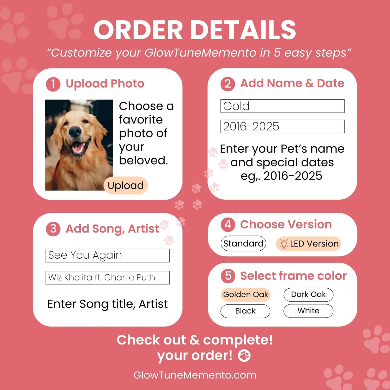 🖼️ You’ll get to see the final layout with your pet’s name, photo, and quote.