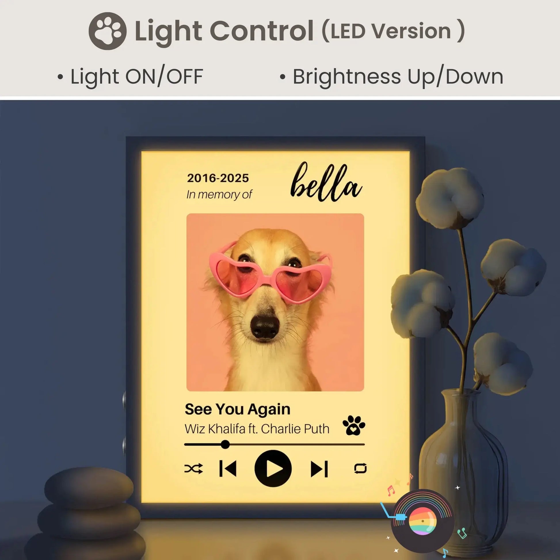 GlowTuneMemento offers a seamless, hassle-free customization process. Simply upload your favorite photo and select a song that holds special meaning—whether it's a wedding melody, a song that reminds you of home, or a tune that brings comfort. Our team will send a preview via email for confirmation, ensuring everything is just right before production.